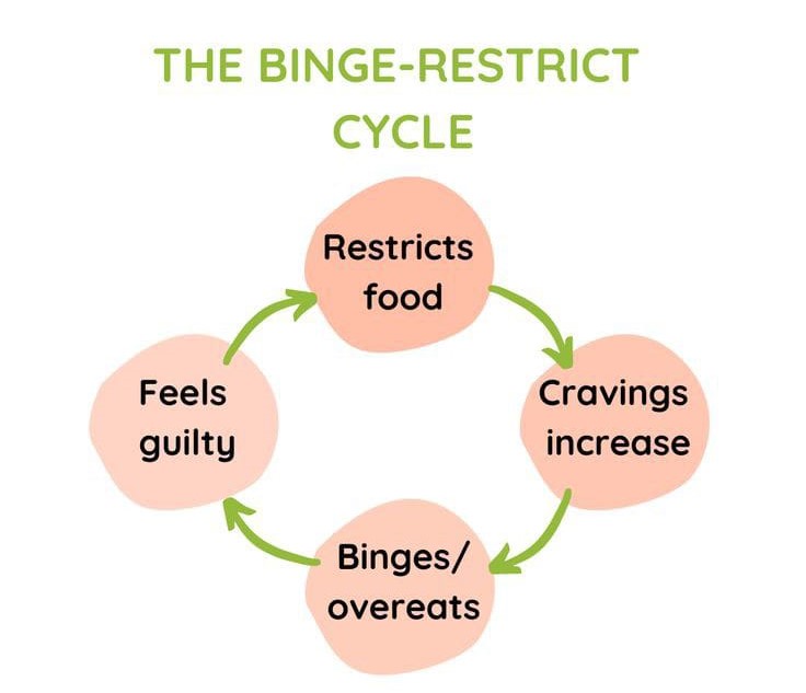 The concept of “cheat meals” is rampant in diet culture, but foods are seen as “forbidden” or part of a “cheating” episode. It makes a negative association with eating, reinforcing the idea that some foods are to be avoided at all costs and that if consumed, must be “earned” or “paid for” through extra workouts or restrictive eating the next day.