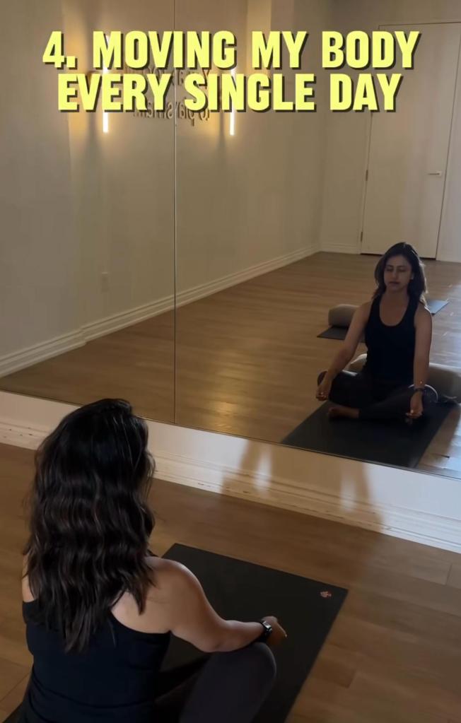 I don’t do hardcore workouts every day. Some days it’s yoga. Other days, a 20-minute walk, or just dancing to Bollywood music in my room.